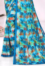 Woman’s Digital Printed Weightless Chiffon Saree With Blouse Piece