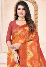Be the first to review “Woman’s Silk Base Jacquard Digital Printed Saree With Handmade Zaalar Pallu & Blouse Piece” Cancel reply