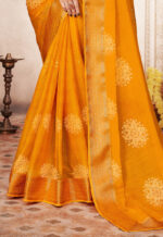 • Jacquard Design Weaving: The saree boasts intricate Jacquard design weaving, a weaving technique that creates raised patterns on the fabric. This adds a layer of texture and depth to the saree, enhancing its overall visual appeal. The Jacquard design may feature traditional motifs, geometric patterns, or floral elements, showcasing the artistry of the weavers.
